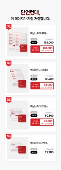 버닝스위치는 구매 수량에 따라 다양한 가격대를 제공합니다. 1박스는 27,200원으로 시작하며, 다량 구매 시 최대 7%까지 할인이 적용됩니다.